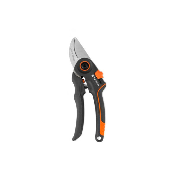 Režite veje s temi lahkimi, vzdržljivimi, srednje velikimi škarjami, ki jih je enostavno rokovati z eno roko. Ročaje je mogoče prilagoditi za hitrejše rezanje in prilagajanje velikosti roke uporabnika. Zasnovano z utori, ki zadržujejo sok stran od listov, da se ne zlepijo in ne prilepijo na veje. Rezila so zamenljiva, spodnje kovano rezilo pa je mogoče ponovno nabrusiti. Opremljen z ročaji, ki zagotavljajo veliko moč delovanja in blažilniki, ki zmanjšujejo tresljaje in naredijo delo udobnejše.