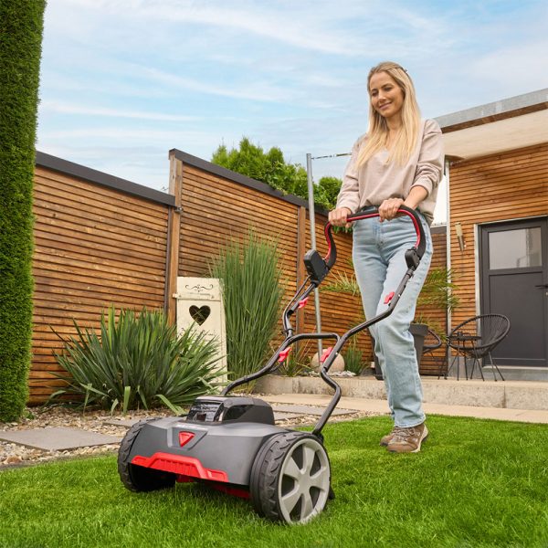Akumulatorska vretenska kosilnica AL‑KO Razor Cut 38.6 Li HM Comfort je brezžična kosilnica z naprednim vretenčnim sistemom rezanja, ki zagotavlja čist, “škarjast” rez trave in urejen videz trate. Primerna je za vrtnice in trate do približno 300–400 m² in deluje tiho ter brez izpušnih emisij. LED‑indikator prikazuje stanje napolnjenosti baterije, kosilnico pa lahko uporabljaš tudi ročno brez baterije.